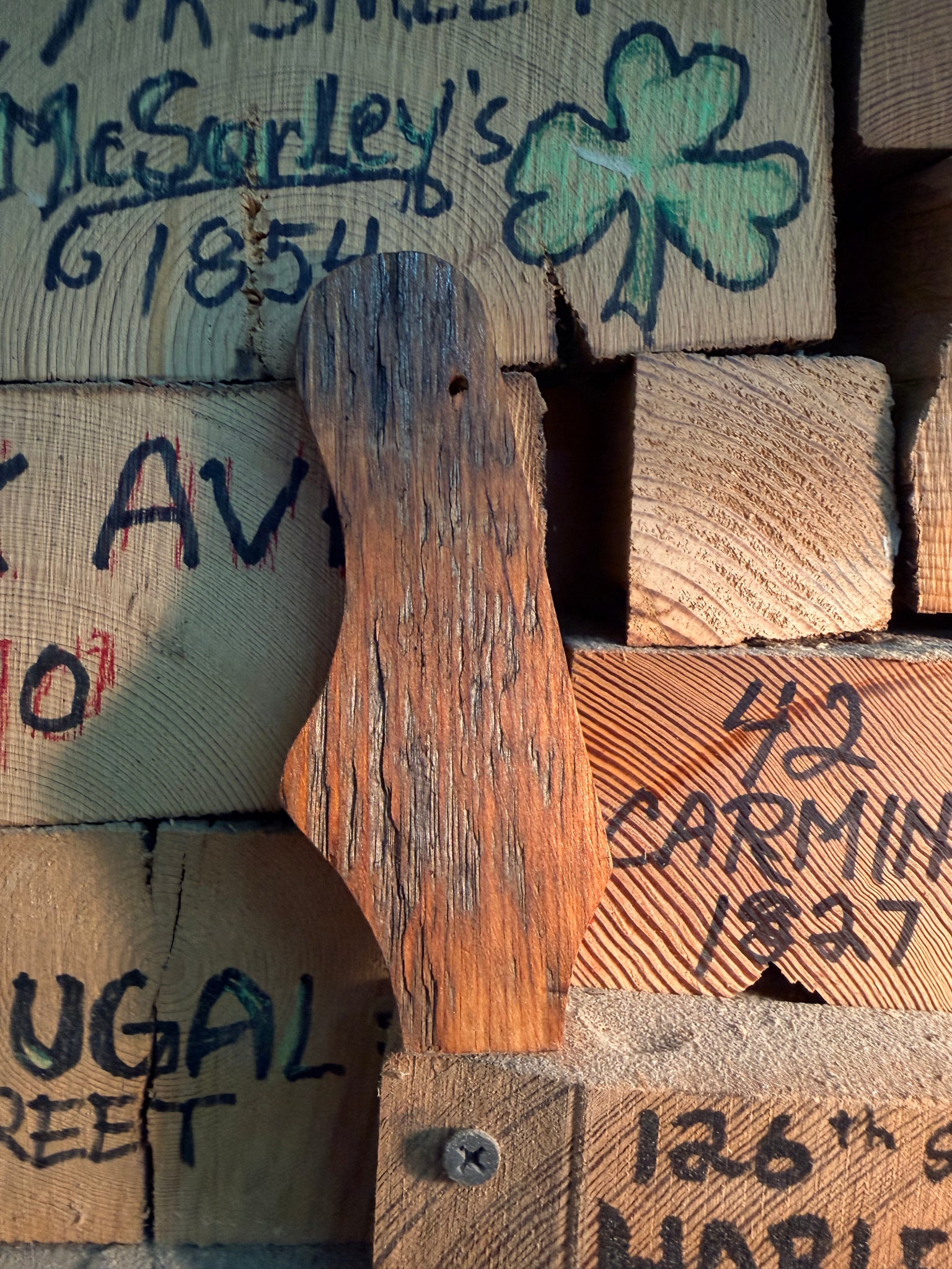 Handmade out of the scraps from the Bones of Old New York Bowery Pine guitars that we are known for. You can place these babies anywhere and even add a hook if you want to gift an ornament! Each one unique and grain/visual varies slightly.